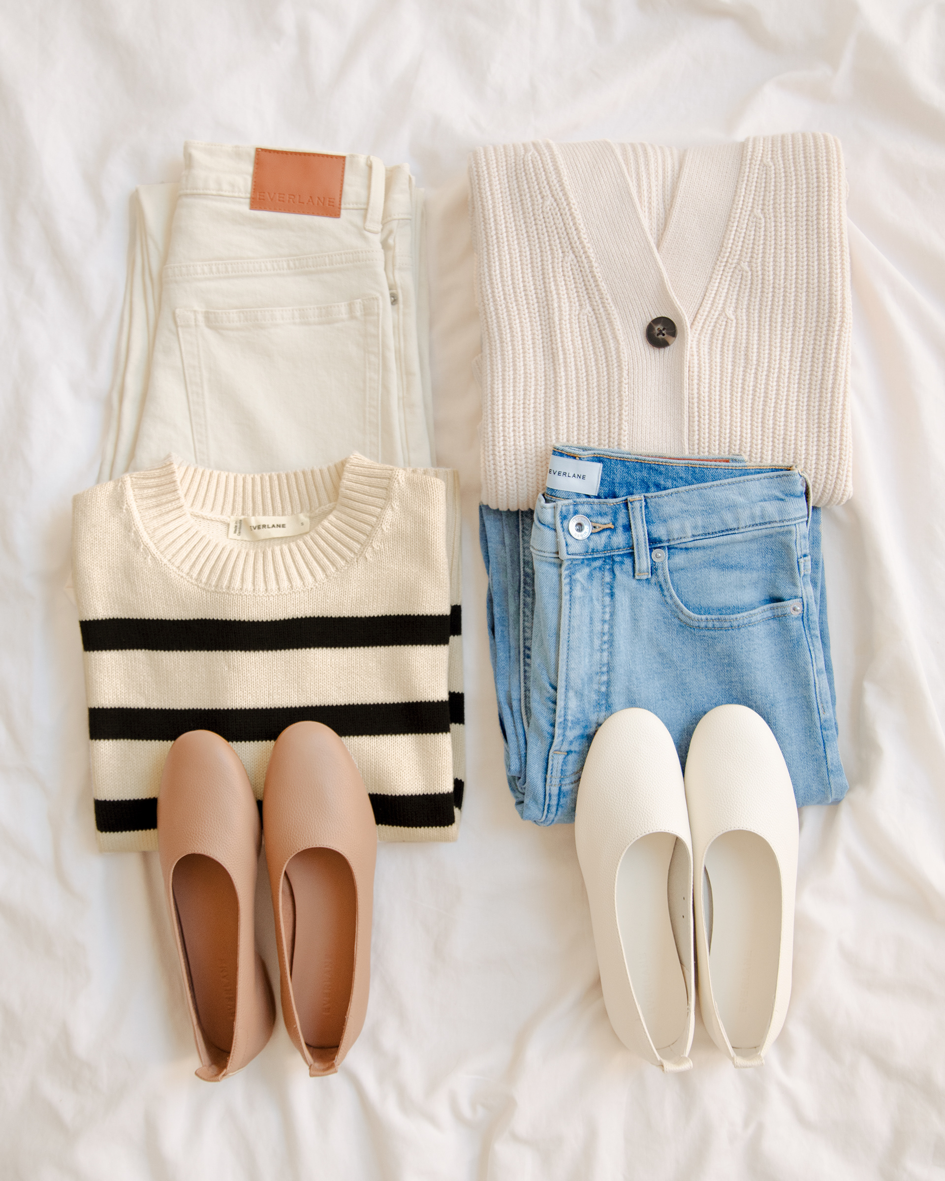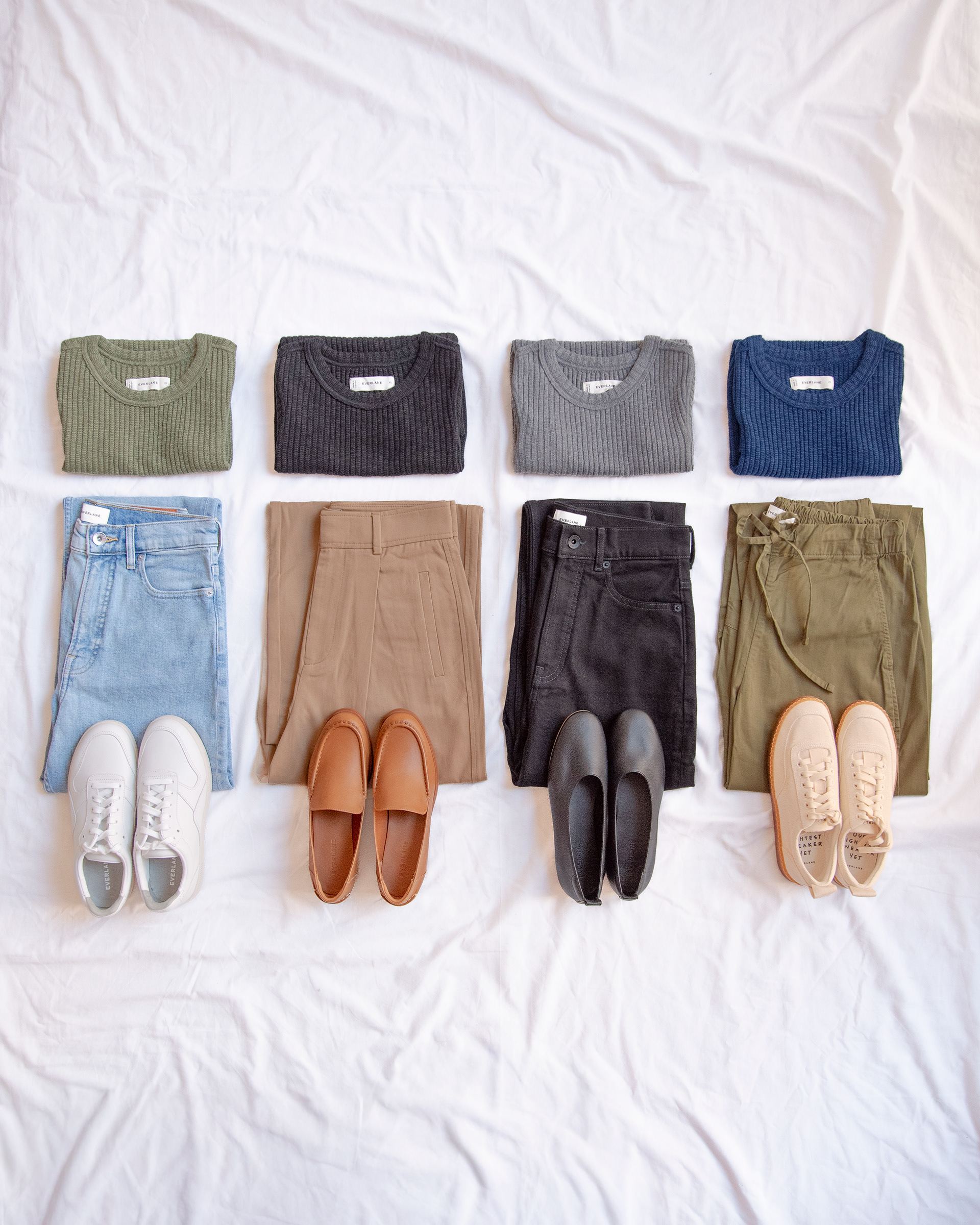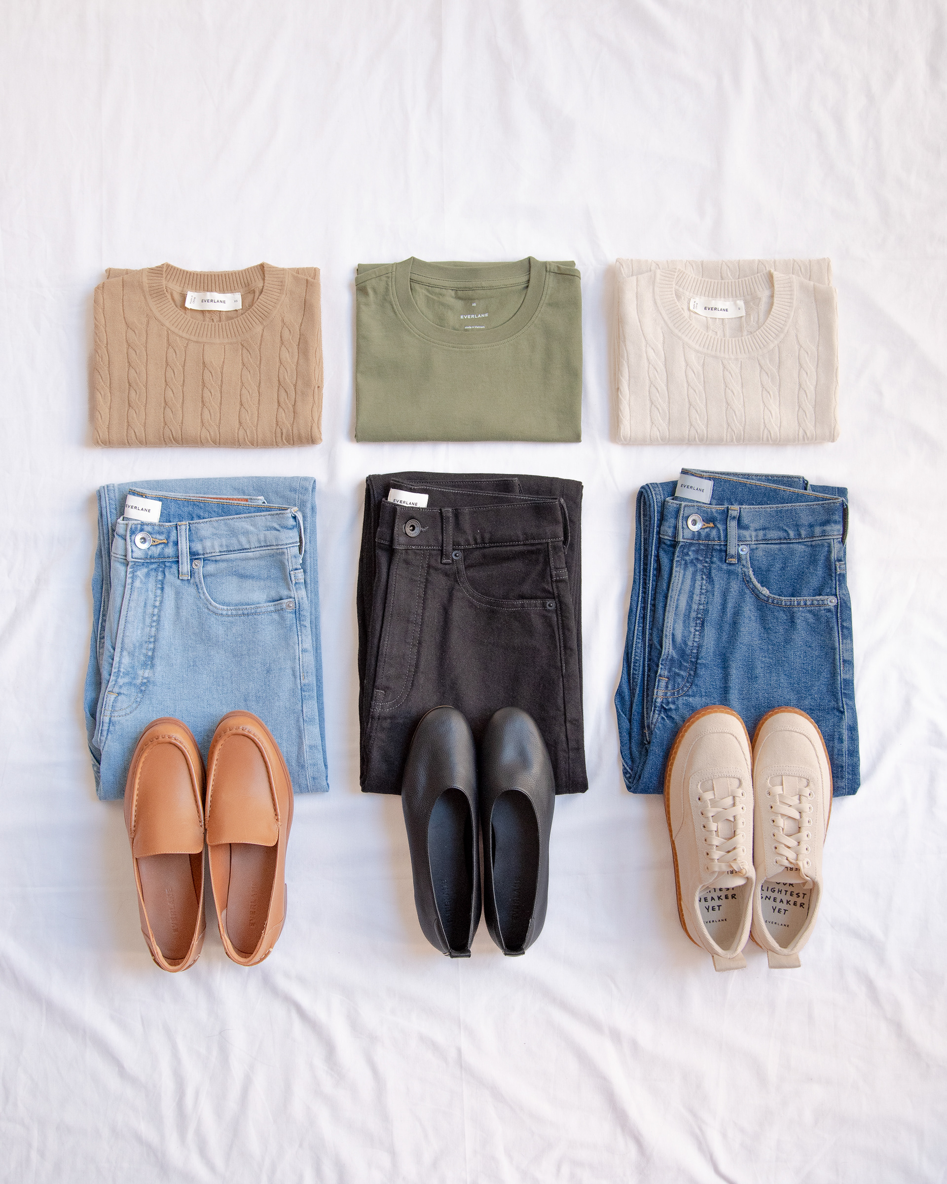 Estilismo y fotografía e-commerce con luz natural para los 'armario cápsulas' de TMW con prendas de Everlane. Contenido producido para catálogos digitales y redes sociales.